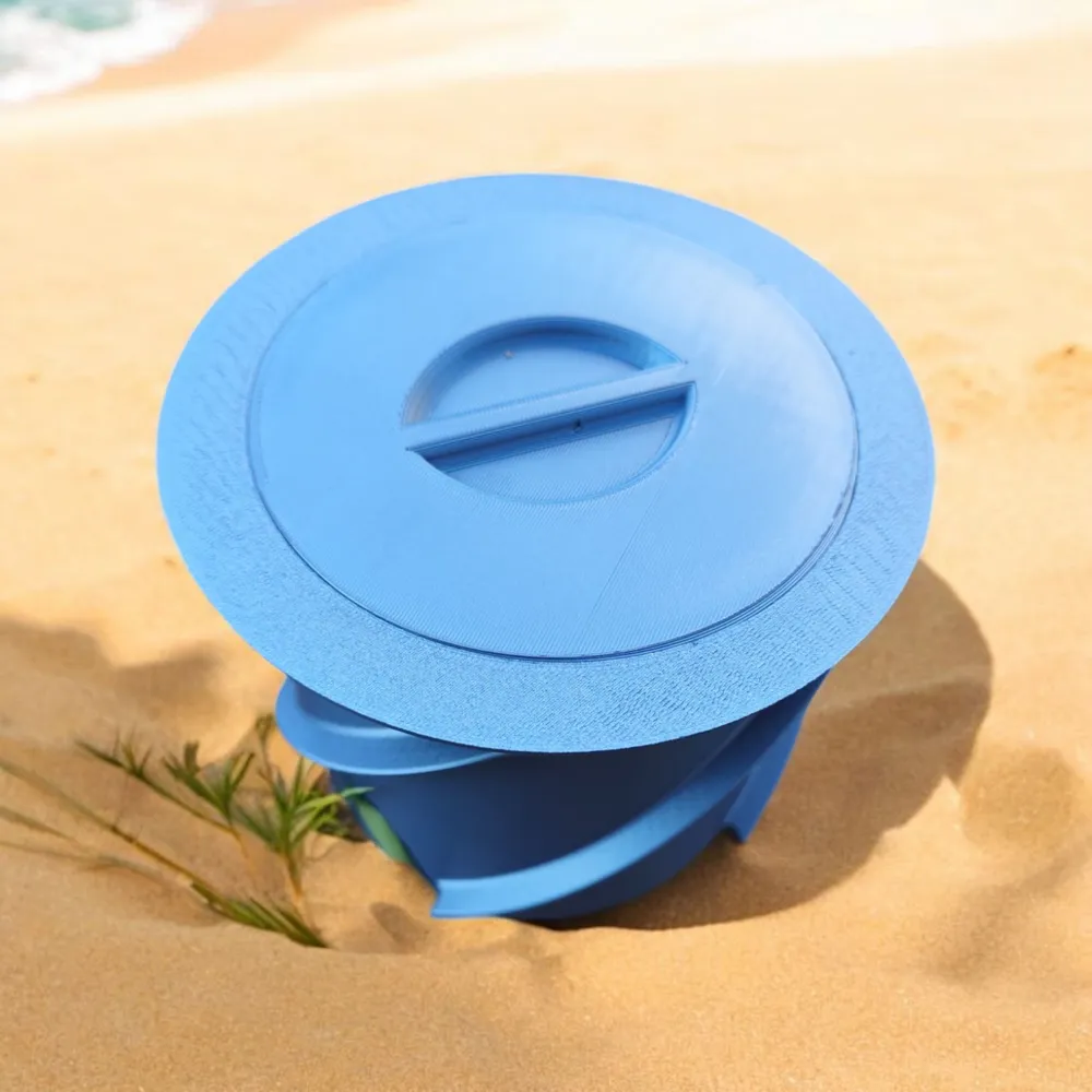 Leave your worries in the sand — literally. This beach vault buries into the sand and blends in like an ordinary bucket, keeping your phone, keys, wallet, and valuables hidden and out of sight while you swim. The lid seals securely on top and the spiral handle design makes it easy to carry to and from the beach.