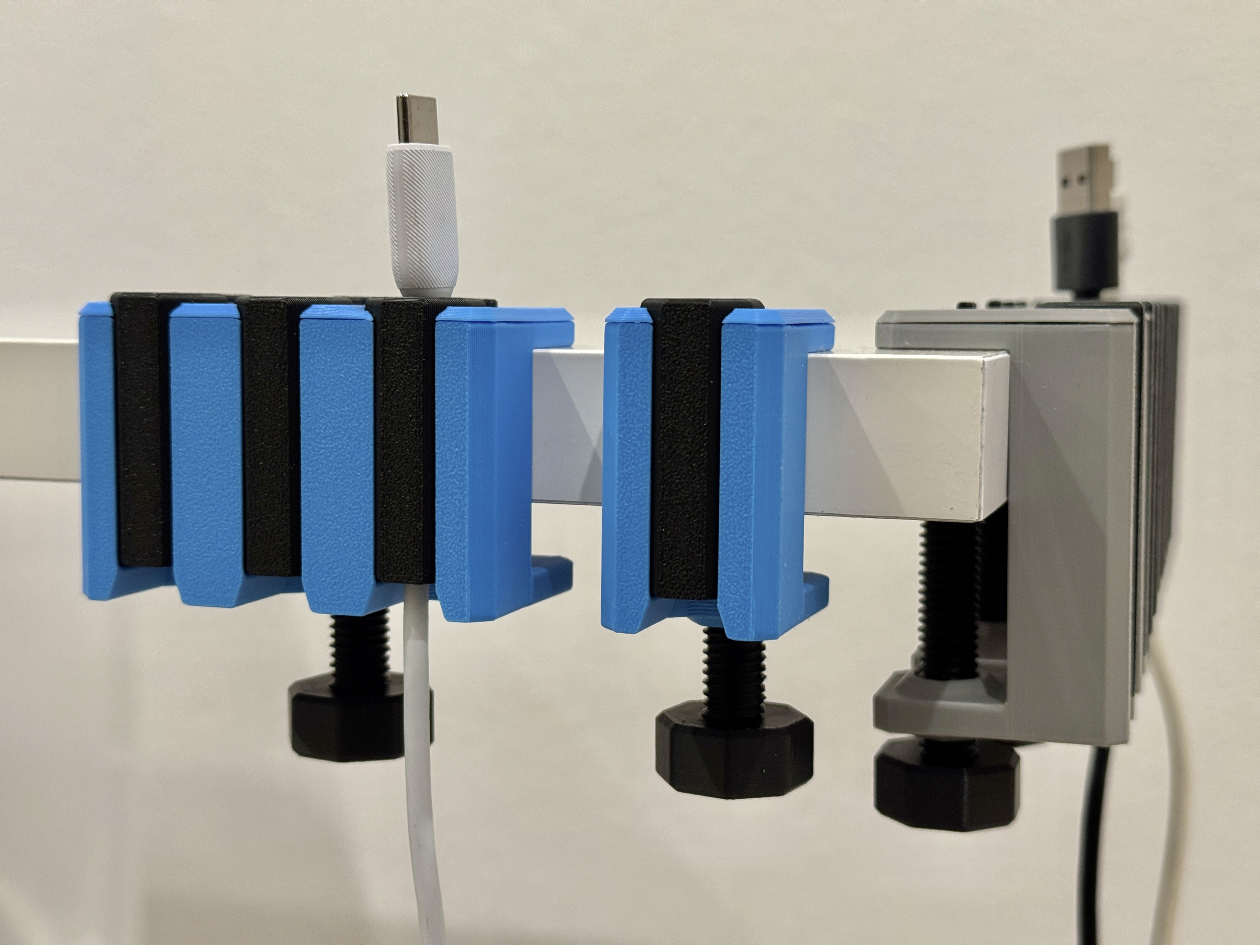 🖨️ 4 hours — made fresh, in-house, just for you.3D printed desk cable clip that clamps to your desk edge. Holds 1, 3, or 5 cables. Fits 30mm or 50mm desks. 14 colors. Made by dksr Prints in Sarasota, FL.