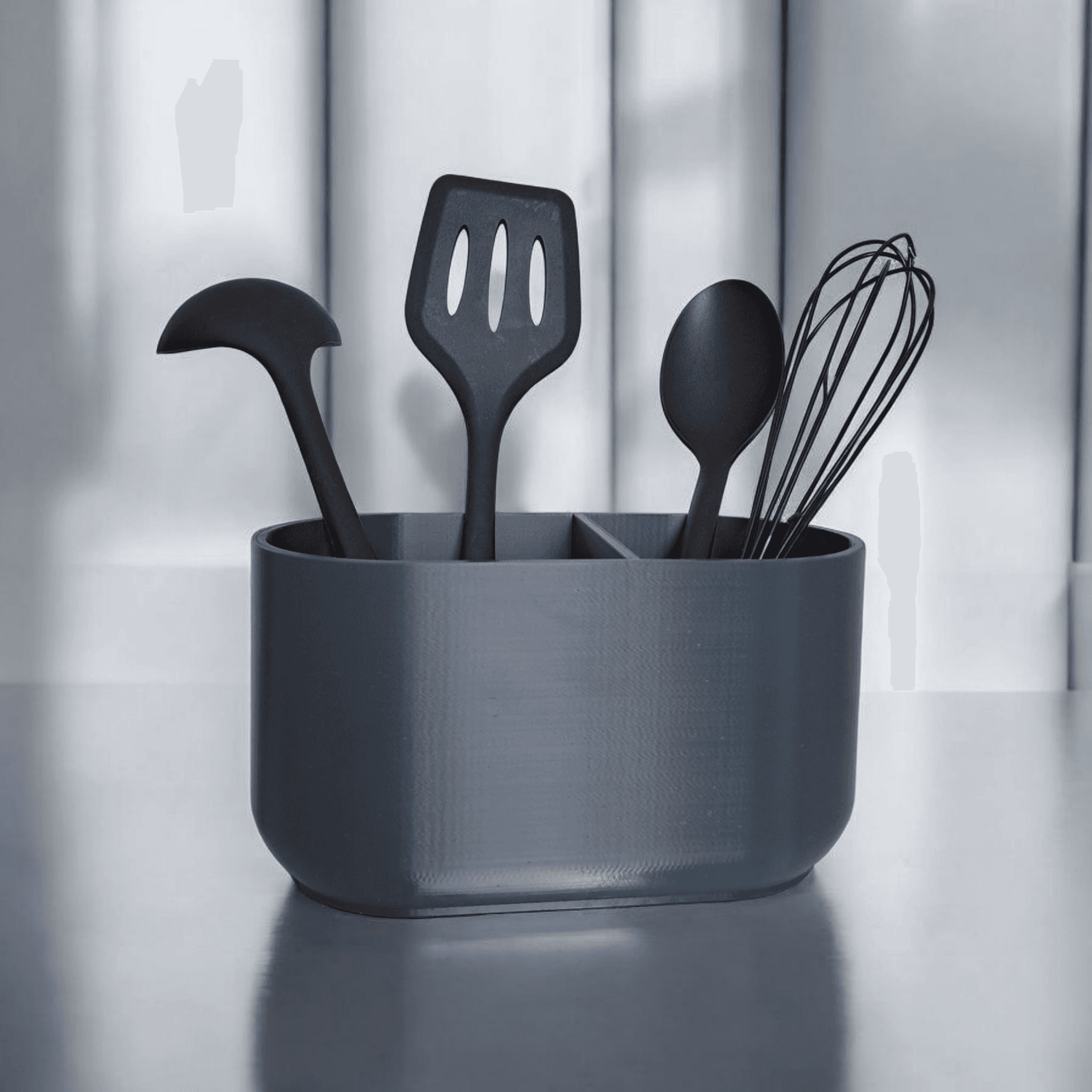 Built for the serious home cook. This wide dual compartment utensil holder gives your tools the space they deserve β one side for everyday spatulas and spoons, the other for everything else. The low-profile oval silhouette keeps it from feeling bulky while still holding a full set of kitchen tools with ease.