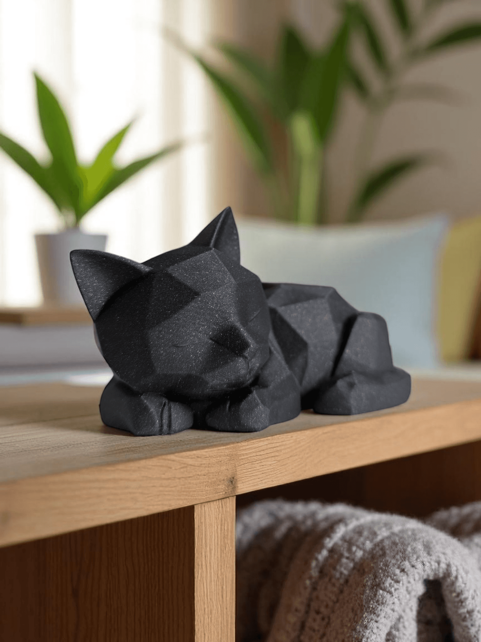 Curled up, eyes closed, completely unbothered. The Low Poly Cat Sculpture captures that perfect resting cat pose in clean geometric facets β the kind of piece that looks like it belongs in a design store but lives happily on your desk or shelf.