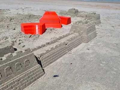 Take your sandcastle game to the next level. This advanced sandcastle kit comes with detailed wall section molds featuring brick texture, arched windows, and a gate piece β giving you everything you need to build an impressive fortified castle right on the beach. The detailed stonework presses into the sand for results that look like something out of a medieval epic.